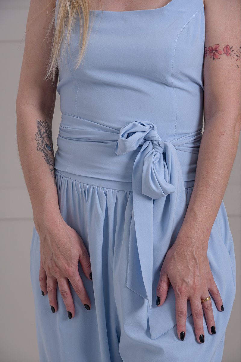 A blusa amarração azul claro feminina é uma peça moderna e delicada que valoriza a silhueta de forma elegante. Confeccionada em tecido leve e confortável, possui alças largas, decote quadrado e faixa para amarração na cintura, garantindo um caimento sofisticado e versátil para diferentes ocasiões.
