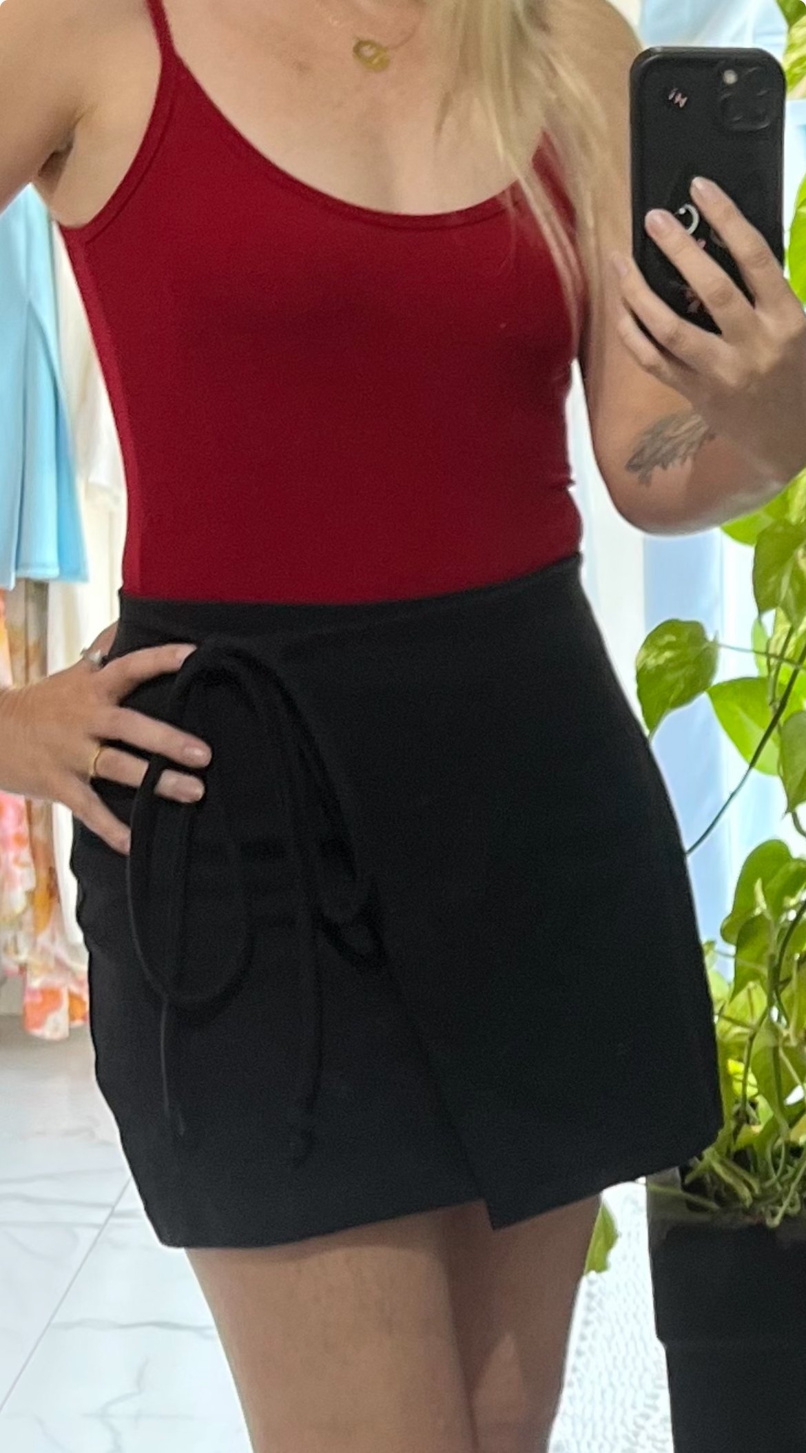 O tecido em malha oferece toque macio e caimento impecável, enquanto as alças finas dão um charme delicado e moderno — perfeito para usar sozinho ou como base em sobreposições.