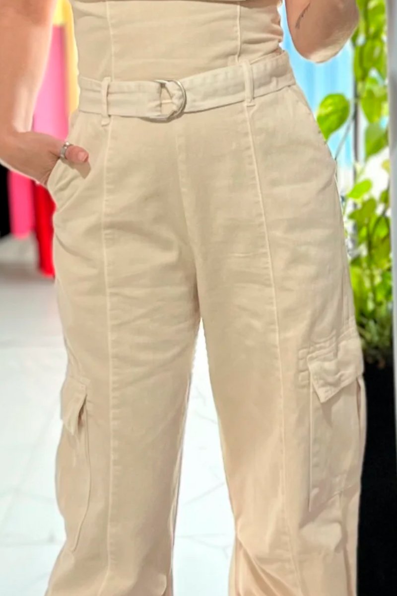 Macacão Bege Cargo Feminino