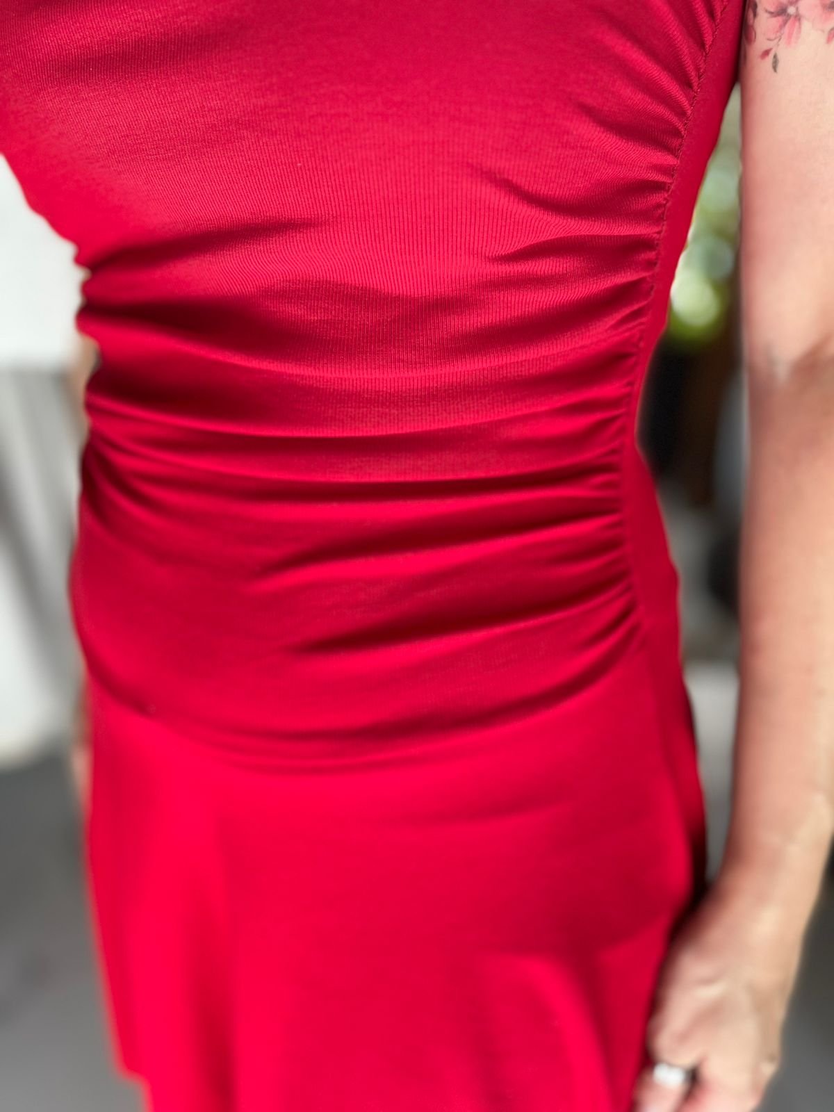 A assimetria do decote traz um toque de sofisticação, enquanto a saia levemente rodada deixa o visual mais leve e feminino. Um vestido versátil para eventos, jantares, encontros e ocasiões especiais.
